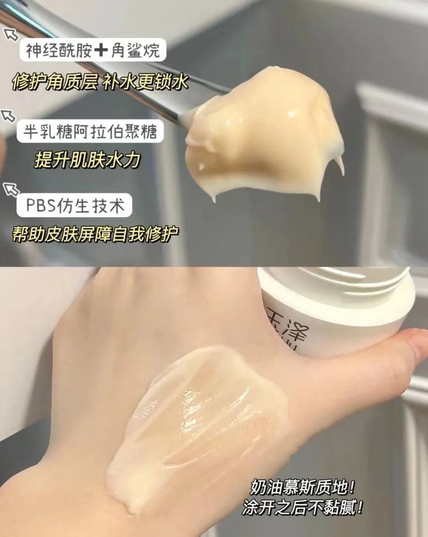 下面是你们要的玉泽面霜~也是玉泽家王牌单品之一,官旗做活动了,不光直接打折,还有水和调理乳送! 他家面霜成分上主要是通过植物提取油脂模仿人体的皮脂膜,起到修hu皮肤屏障+持久保湿的作用(PBS仿生技术)。为受损肌肤修护提供良好环境。尤其适合干敏皮肤。 这款我身边敏感肌的朋友用过,都说好用!但是质地是比较油润的,建议用的时候是不要直接上脸,可以先取一丢丢膏体,在掌心搓热,呈透明状再按压上脸,就不会油,而且很润,吸收很快,每天晚上用最好。用量真的很省,一罐可以用好久。敏感肌的小伙伴可以试试看!