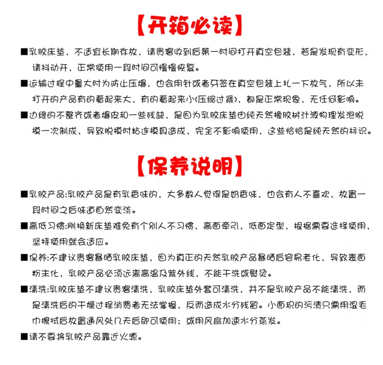 1.乳胶床垫收到货之后应立刻检查,如有质量问题,请勿签收;