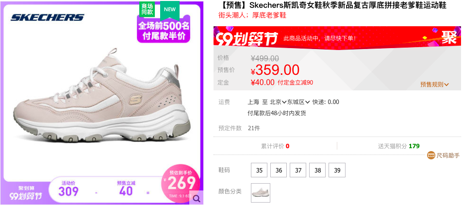 👆活动价:269 元👆 别看斯凯奇的老爹鞋鞋底厚得很,实际上不沉,反正我掂着的手感,是比帆布鞋要轻的。无论是逛街、通勤甚至健身都能 hold。这款是皮面复合材质,更适合秋冬户外穿着。目前尺码齐全。在天猫斯凯奇旗舰店日常价 499 元,预售价 359 元,需付定金 40 元,到手价 269 元,另外店内多款鞋子都有预售活动,可以进店逛逛哒。