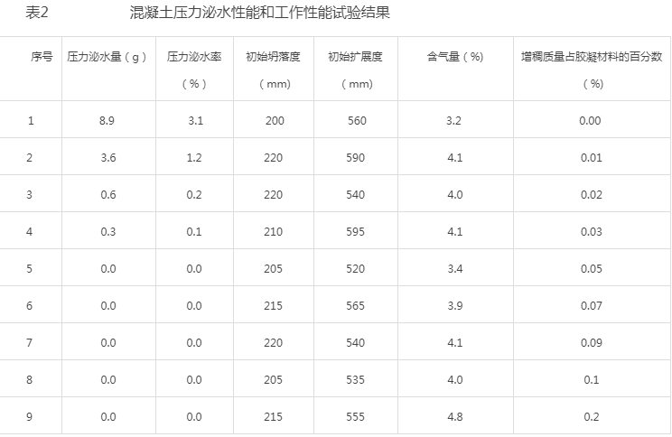 (2)增稠剂可以在基本不改变现行混凝土施工工艺的前提下改善混凝土的泌水性能,彻底解决矿渣水泥混凝土泌水的严重问题,增稠剂的分子量应该不小于10万。