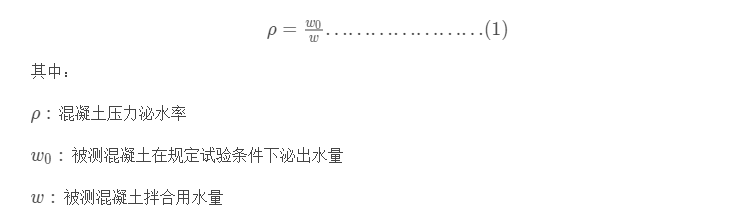 用压力泌水率来反应它的泌水性能。很明显,压力泌水率越大,则表明混凝土泌水性能越差,压力泌水率越小,表明其抵抗压力泌水的能力越高。