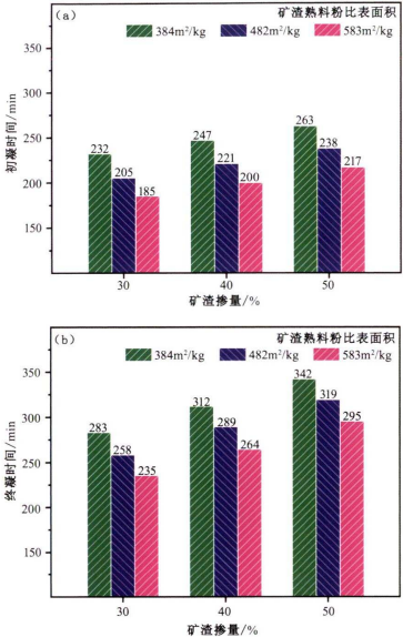图6 优化粉磨矿渣水泥的凝结时间