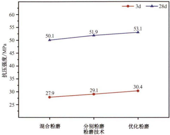 图8 优化粉磨矿渣水泥的抗压强度