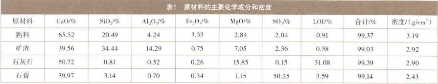 本实验所用的熟料、矿渣、石灰石和石膏均取自广州市某水泥厂,上述原材料的主要化学成分和密度见表1。