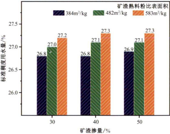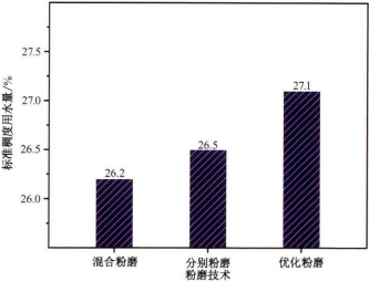 图5 优化粉磨矿渣水泥的标准稠度用水量