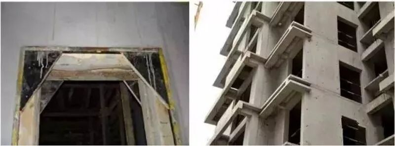 墙体预留洞建议采用定型化钢模支模,提高工作效率和防止洞口变形;所有外立面线条、柱、悬挑板等构件应与主体结构同时施工,由于施工工艺要求必须分两次施工时应隔层施工完成。