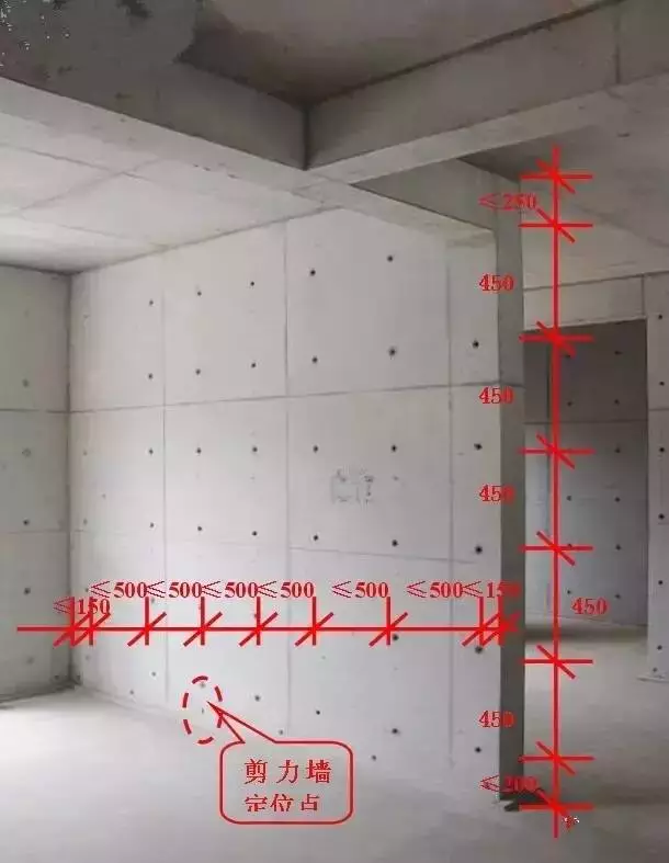 1.1 层高3m的标准层墙体应设置5~6道水平加固螺杆,水平加固螺杆间距不得大于500mm,最底下一道离地不得大于200mm,最上面一道离板底不得大于250mm。