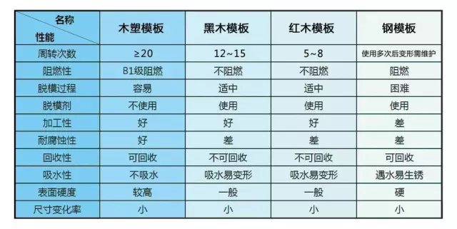 北京、重庆、江苏、浙江、河北、贵州等地建设厅已将脲醛树脂生产的竹、木胶合模板纳入禁止使用建筑材料目录。 各类建筑模板对比