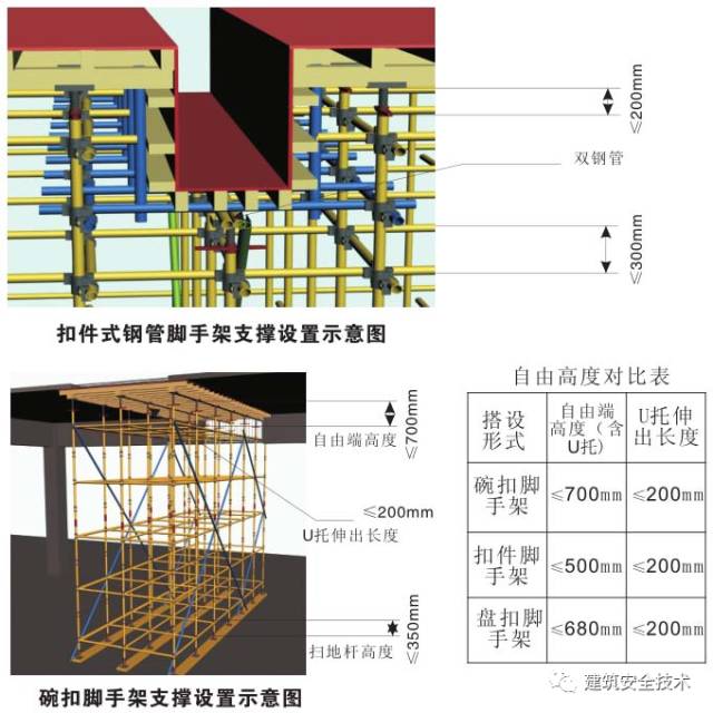 5. 碗扣式立柱上端包括可调螺杆伸出顶层水平杆的长度不得大于700mm。