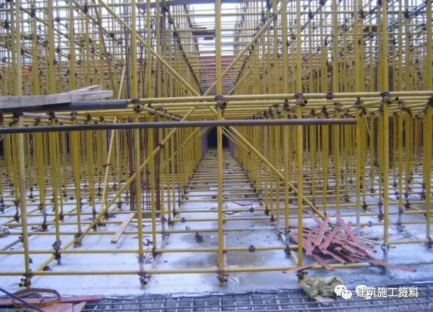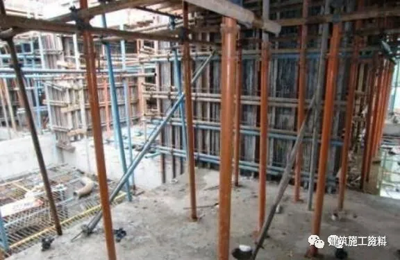 4、浇筑混凝土前必须检查支撑是否可靠、扣件是否松动。浇筑混凝土时必须由模板支设班组设专人看模,随时检查支撑是否变形、松动,并组织及时恢复。