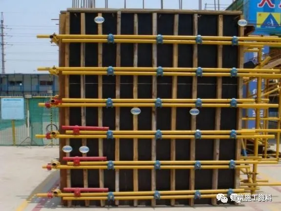3、剪力墙模板背方间距 200mm,螺杆离 阴 角 间 距200mm,螺杆离封头间距 200mm,螺杆间距≤ 500,第一排螺杆离地小于200,最上面一排螺杆小于 300。
