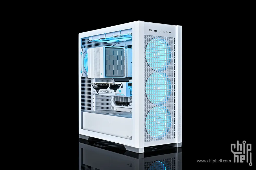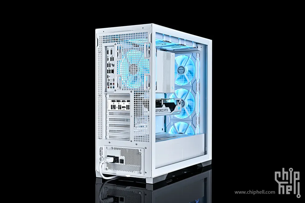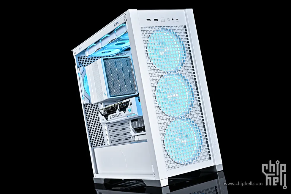 一、整机展示。整机白色调为主,淡蓝绿色 ARGB 灯效点缀(R3,G204,B182)。以下为主机各角度展示。 机身左侧高透钢化玻璃侧板,展示硬件更通透,白色包边更美观,同时采用免工具快拆结构设计。      机箱主板侧展示。 打开高透钢化玻璃侧板,内部展示。 背部一览。 打开背板,背线理线展示。 前面板方形开孔格栅,采用方形开孔格栅前面板,超大开孔率、硬朗外观,为强劲散热而生,提供更强力气流的同时能够进一步降低噪音。内置可拆卸防尘网。 移除前面板,内部安装了 3 颗追风者 Phanteks D30 140 White(正叶)风扇进风。 机箱前置 I/O 在前面板最上方,从左到右分别为:2 x USB 3.2 Gen1 TypeA 接口、1x 机箱开关键、1x 机箱重启键、1 x 复合式 3.5mm 耳机/麦克风接口、1 x USB 3.2 Gen 2x2 Type C 20G 接口。 来看机箱内部各硬件情况。   fill=%23FFFFFF%3E%3Crect x=249 y=126 width=1 height=1%3E%3C/rect%3E%3C/g%3E%3C/g%3E%3C/svg%3E) 九州风神 ASSASSIN IV WH 阿萨辛 4 纯白双塔散热器。 全白化优雅西装刺客风格,传承的矩阵式白化鳍片组,由 106 片铝制鳍片构成,约 1139394mm² 有效散热面积,搭配精加工微凸铜底座+7 根 6mm直径双向恒定热平衡热管设计,解热功耗可达 280W,散热更高效。内置 140mm FDB 风扇,搭载三项六级变频电机,提供更干净的电流,令风扇转动更稳定更静音。 散热器左侧为排风面。内置 1 颗 120mm 咖灰色反叶风扇,可将热量迅速带走。 右下角的可发光松石绿 Logo 也可配合风扇模式变换明暗效果,让玩家一目了然知晓。 可双模切换满足性能及静音需求,最低噪音 ≤22.6dB(a)。 华硕 ASUS TUF GAMING Z790-BTF WIFI 主板供电散热 I/O 装甲上的 TUF GAMING Logo 及字样标识。 美商海盗船 USCORSAIR DOMINATOR TITANIUM 统治者泰坦 DDR5 7200 48GB(24GB x2)White。拥有 CORSAIR DHX 散热专利,让内存能够在高频下稳定工作, 11 颗嵌入式可单独寻址的 RGB LED 灯珠,可通过 iCUE Murals 软件预设和自定义动态 RGB 灯光。本次装机选配了无光鳍片散热模组。 选配了黄铜无光鳍片模组强化内存散热,更有质感。 内存右侧主板装甲阳刻有 TUF GAMING 标识。 这款机箱搭配背插主板最佳,如果安装常规主板,机箱还设计了主板 24Pin 接线挡板,可以让线材接头更少的露出,更美观。 华硕 ASUS TUF GAMING Geforce RTX 4070Ti SUPER O16G-BTF White。主打硬朗军事风格,全金属外壳,哑光白配色让显卡本体非常简洁清爽,3.25 槽设计,背置 BTF 接口,无需传统 16Pin 外部电源连接到显卡,正面观感更美观清爽。 采用军规级别电容,可在 105 ℃ 温度环境下运行 2 万小时,更为耐用,金属强化框架增加结构强度和通风孔以提升散热性能。采用了标志性的全自动化工艺制造,消除了人工在操作过程中的不确定性,让显卡的品质更出色。 显卡正面采用高质感的压铸金属护盖作为导风罩,哑白色电泳喷涂,显卡导流壳侧边的开放式设计,配合金属背板尾部的大面积的镂空,能够极大地提高散热效率。 fill=%23FFFFFF%3E%3Crect x=249 y=126 width=1 height=1%3E%3C/rect%3E%3C/g%3E%3C/g%3E%3C/svg%3E) 侧面左侧同样印有 TUF GAMING 字样。 侧面中央印有 GEFORCE RTX 字样。 显卡侧面右侧的“TUF”字样 RGB Logo,连同下方的横条,可以支持自家的 AURA SYNC 神光同步信仰灯效,能够与其他硬件进行联动,打造出更为炫酷的整体灯效。 搭载了 3 个 Axial-tech 轴流风扇,轴流风扇再加大提供 21% 以上的风量,风扇上均使用了全高阻隔环,能大幅提升静压,配合中央风扇与两侧辅助风扇的正逆转工作设计,可以减少空气乱流,提高散热气流利用率。同时,风扇也支持低负载完全停转的技术,降低显卡低负载运行时的噪声。同时,双滚珠轴承的使用寿命是传统设计的两倍。 高质量的压铸金属护盖和显卡背面为厚实的铝制背板,可防止 PCB 弯曲并辅助散热。显卡尾部镂空式设计,贯穿通风,减少尾部重量防止下垂,同时兼顾散热风道。 华硕 ASUS TUF GAMING Z790-BTF WIFI 主板右侧 BTF 2.0 主板供电插槽。全新的 Sealth Connect 隐藏接口代替了显卡外侧的供电接口,可提供 600W 以上功率。全新设计的显卡易拆键,拆装显卡更方便。 主板下方配备大面积 PCH 散热片及 4 个 M.2 插槽搭配散热片,可将 M.2 SSD 保持在上佳工作温度,以确保始终如一的性能和可靠性。提供更大的散热面积和更佳的导热效率。 为了让机箱内部更封面,搭配风扇为追风者 D30 120/140 White,30mm 厚度大倾角叶片设计,带来更强的空气压力及排风效果,增加 ARGB 元素,无线拼装安装模式 。 前面板 3 颗追风者 Phanteks D30 140 White(正叶)背部及侧面灯效。 顶部 3 颗追风者 Phanteks D30 120 White(正叶)正面及侧面灯效。 移除背部面板,来看机箱背部情况。左上角上下共有 2 个 2.5 寸 SSD 安装位用于存储拓展。 中央为机箱理线空间,非常宽敞,所有前置 I/O 线材做了白化处理,丰富的理线位让理线更轻松。前、中、后三条理线通道,搭配卡扣、魔术贴和理线桥的设计让主机内不同的线材得到整洁的走线与合理的布局,让用户在装机走线时更轻松更省时。 下方还有 1 组可拆卸硬盘仓,采用改进硬盘支架的设计,支持将 3.5 英寸 HDD 与 2.5 英寸 SSD 安装在一起,配合机箱背板的硬盘架最多可同时安装 2x 3.5 英寸 HDD 与 4x 2.5 英寸 SDD。 机箱配合背插式主板的开孔精准,安装便捷。37mm 厚的理线空间足够支持背插式主板走线,机箱配备大量理线位,左侧还有藏线凹槽可以将过长的线材藏于此处。右上方主板背部巨大开孔,方便安装散热器背板。 机箱 I\O 预留