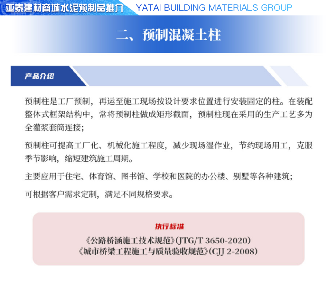 亚泰建材商城水泥产品展示——预制混凝土柱