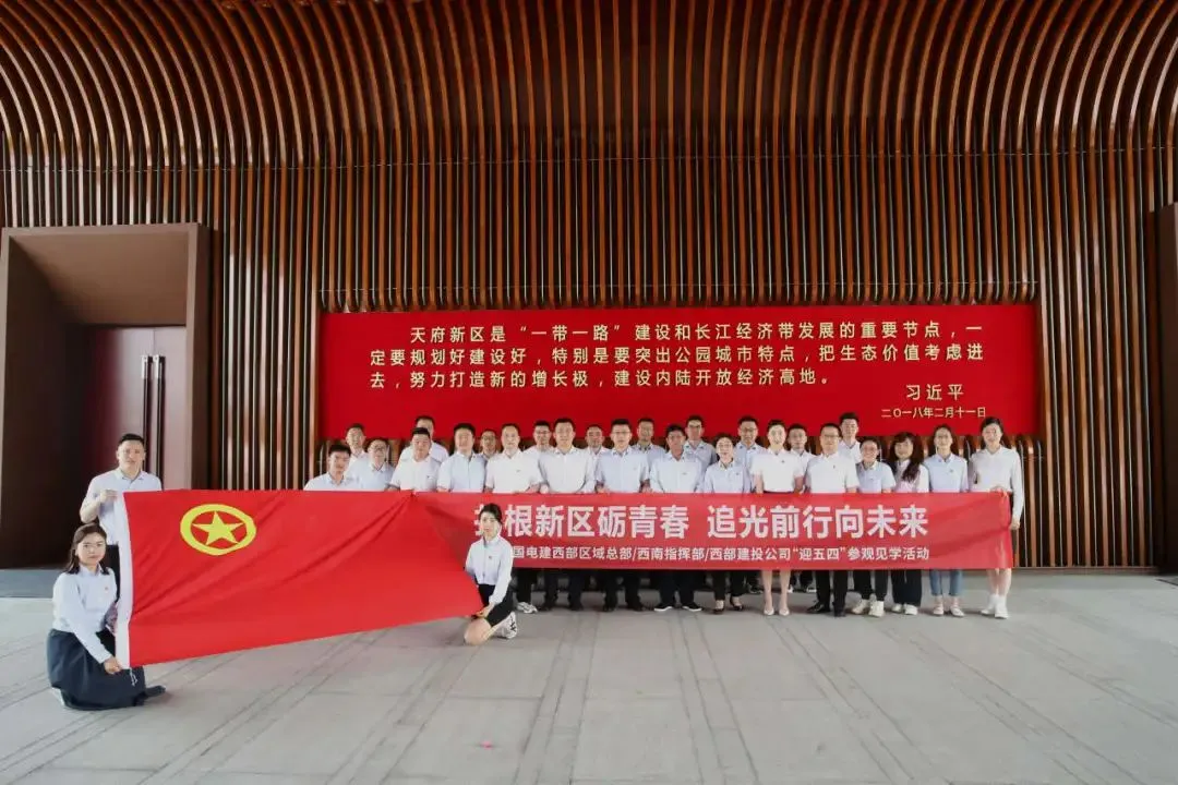 为纪念五四运动、弘扬五四精神,深化青年精神素养提升工程,西部区域总部/西部建投公司/西南指挥部团委协同中国电建西部科创中心各入驻单位共青团组织,以“扎根新区砺青春,追光前行向未来”为主题,组织青年党团员赴四川天府新区规划厅、公园城市展示厅参观见学,感悟思想伟力,凝聚奋进力量。 电建建筑公司