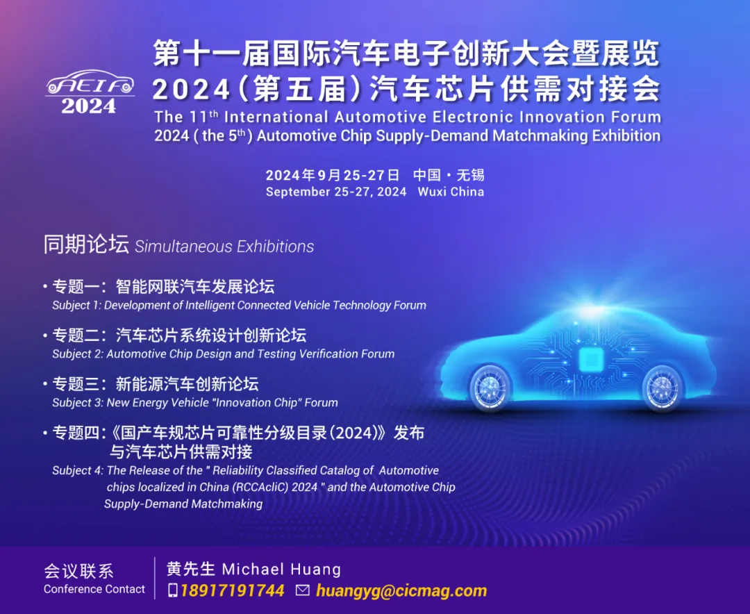 【开放合作、共建共享共赢】第十一届汽车电子创新大会(AEIF 2024)将于9月在无锡举办