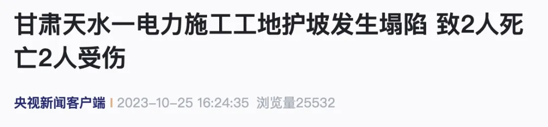 10月25日7时57分许,甘肃省天水市麦积区伯阳镇曹石村一电力施工工地在修砌护坡过程中发生塌陷,致4名施工人员被困。