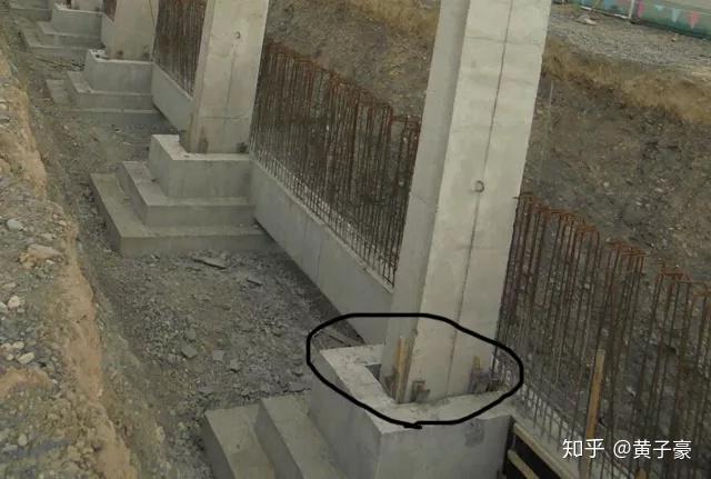 ⑤灌缝。因为杯口比预制柱尺寸大,必须用混凝土把杯口里的缝填满,以达到固定预制柱的目的。