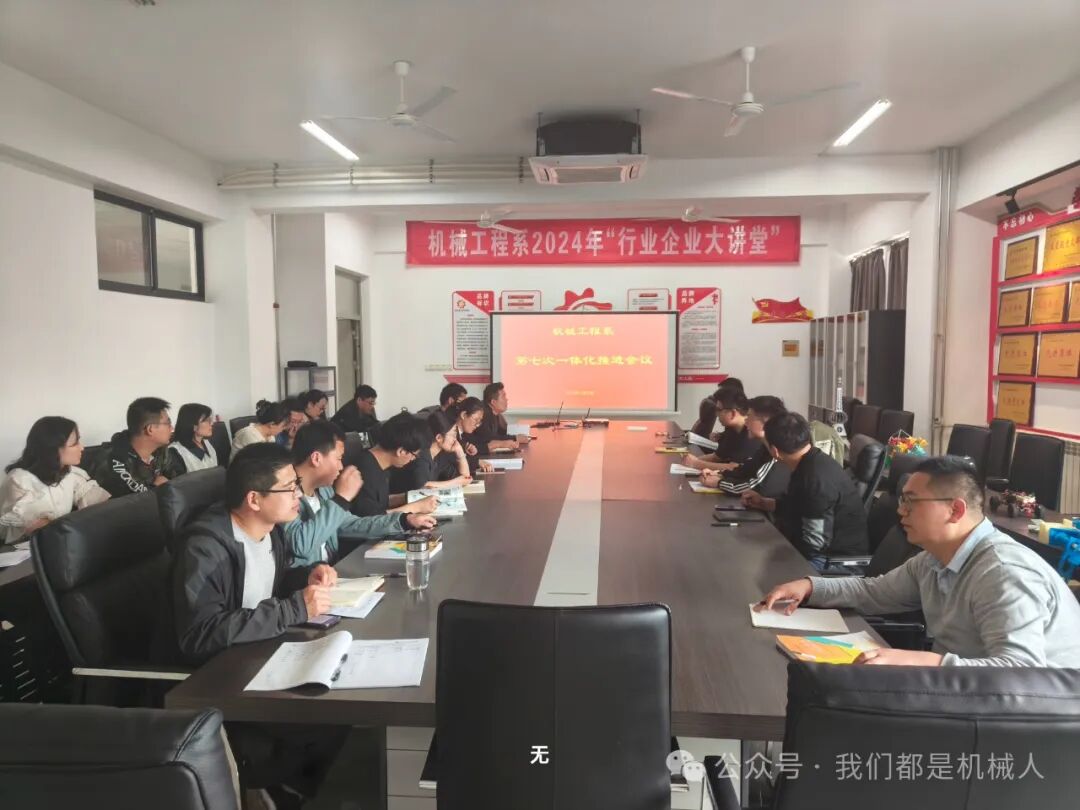 机械工程系抓实推进一体化课程建设,召开多次一体化推进会议,推进一体化课程开发与实施全体参编教师参加。