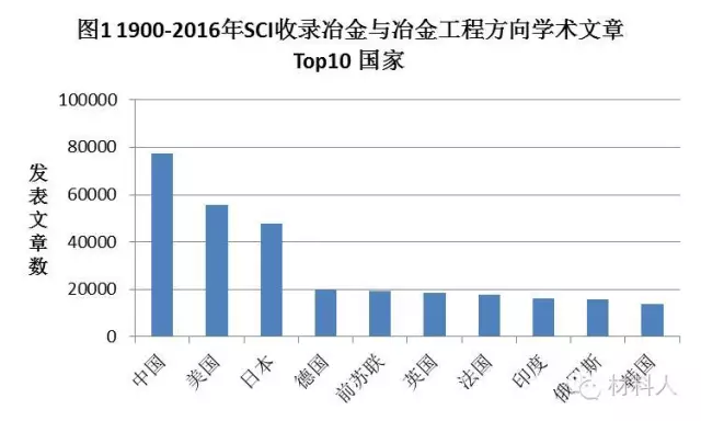 在纳米材料、石墨烯、碳纳米管等研究异常火热的今天,材料领域最传统的方向之一冶金与冶金工程似乎不再受到追捧。其实虽然属于传统学科,但是它与许多材料冶金工业方面的实际问题息息相关,冶金与冶金工程领域的研究水平直接决定着一个国家大型工业及装备制造的技术及质量。本文通过对SCI收录的冶金与冶金工程方向的学术文章数据进行分析,来解读这一传统学科如今在世界及中国的研究状况。