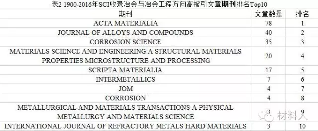 综合以上分析,关于冶金与冶金工程方向的学术文章,我们可以得出以下几点结论:第一,期刊方面Journal of alloys and compounds收录最多,但Acta materialia影响力最大;第二,中国科研机构发文量名列前茅,但文章质量及影响力有待提高;第三,美国科研机构的学术文章相对影响力更强,实至名归。