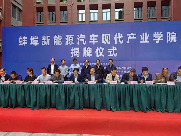 学校始终立足蚌埠市,服务安徽省区域经济和产业发展,紧密对接区域经济和机械、新能源行业发展需要,积极推进科学研究,提升科技创新和社会服务能力。学院通过与地方政府和企事业单位的紧密合作,促进了地方经济和学校共同发展,已形成“教学科研支撑地方服务、地方服务促进教学科研”的共赢局面。蚌埠学院与湖南华曙高科技有限责任公司完成共建3D打印产业学院合作协议签署,针对专业建设、实习实践、就业创业、科研交流等方面开展合作。产业学院成立以来,得到了学校领导及合作企业的大力支持。在蚌埠市委、市政府统筹指导下,蚌埠学院协同蚌埠市发改委和相关企业共建蚌埠新能源汽车现代产业学院。进一步深化了产教研融合、校政行企合作,充分发挥了产业优势和企业重要教育主体作用,有效促进了教育链、人才链与产业链、创新链有机衔接,以构建“产、学、研、用、创”现代应用型本科人才教育体系,更好地服务蚌埠市经济发展,服务皖北地区全面振兴。    fill=%23FFFFFF%3E%3Crect x=249 y=126 width=1 height=1%3E%3C/rect%3E%3C/g%3E%3C/g%3E%3C/svg%3E)