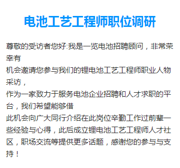 04锂电工艺工程师职位问卷调查
