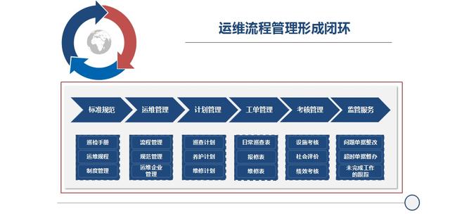 建立运维流程,通过地图定位等技术手段完成运维过程管理,通过工单流转、事件督办、考核管理等环节实现全面监管运维情况和开展目标考核。