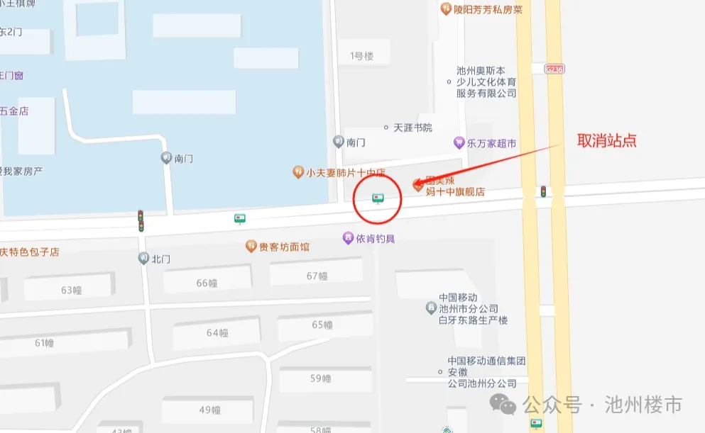 3.池州公交取消百牙东路北侧“市第十中学”临时停靠点