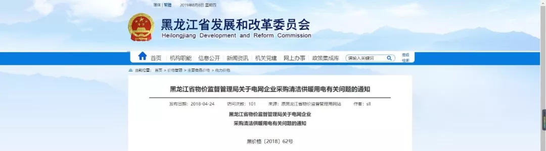 黑龙江省物价监督管理局《关于电网企业采购清洁供暖用电有关问题的通知》