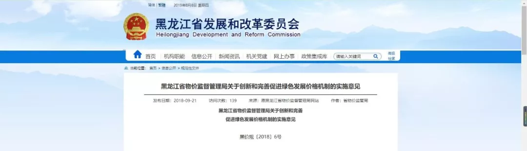 黑龙江省物价监督管理局《关于创新和完善促进绿色发展价格机制的实施意见》
