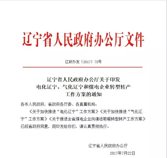 辽宁省人民政府办公厅《关于印发电化辽宁、气化辽宁和煤电企业转型转产工作方案的通知》