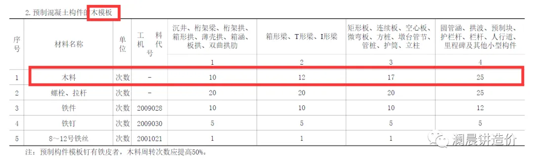 (4)根据实际摊销周转次数,按比例调整定额中模板主材的消耗量即可。