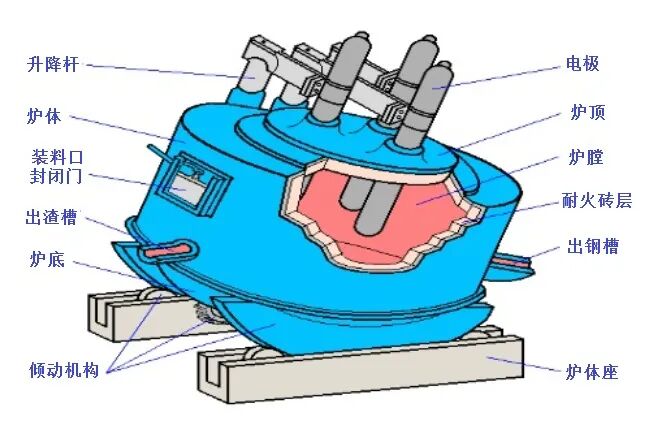 电炉炼钢工艺流程如图:电炉(EAF)通过电极电弧放电产生热量来融化废钢和生铁来生产钢水。随后使用二次精炼工艺来对钢液的成分、温度和清洁度进行细微的调整。