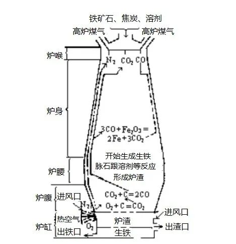 炼铁方法主要有高炉法、直接还原法、熔融还原法等,其原理是矿石在特定的气氛中(还原物质CO、H2、C;适宜温度等)通过物化反应获取还原后的生铁。生铁除了少部分用于铸造外,绝大部分是作为炼钢原料。