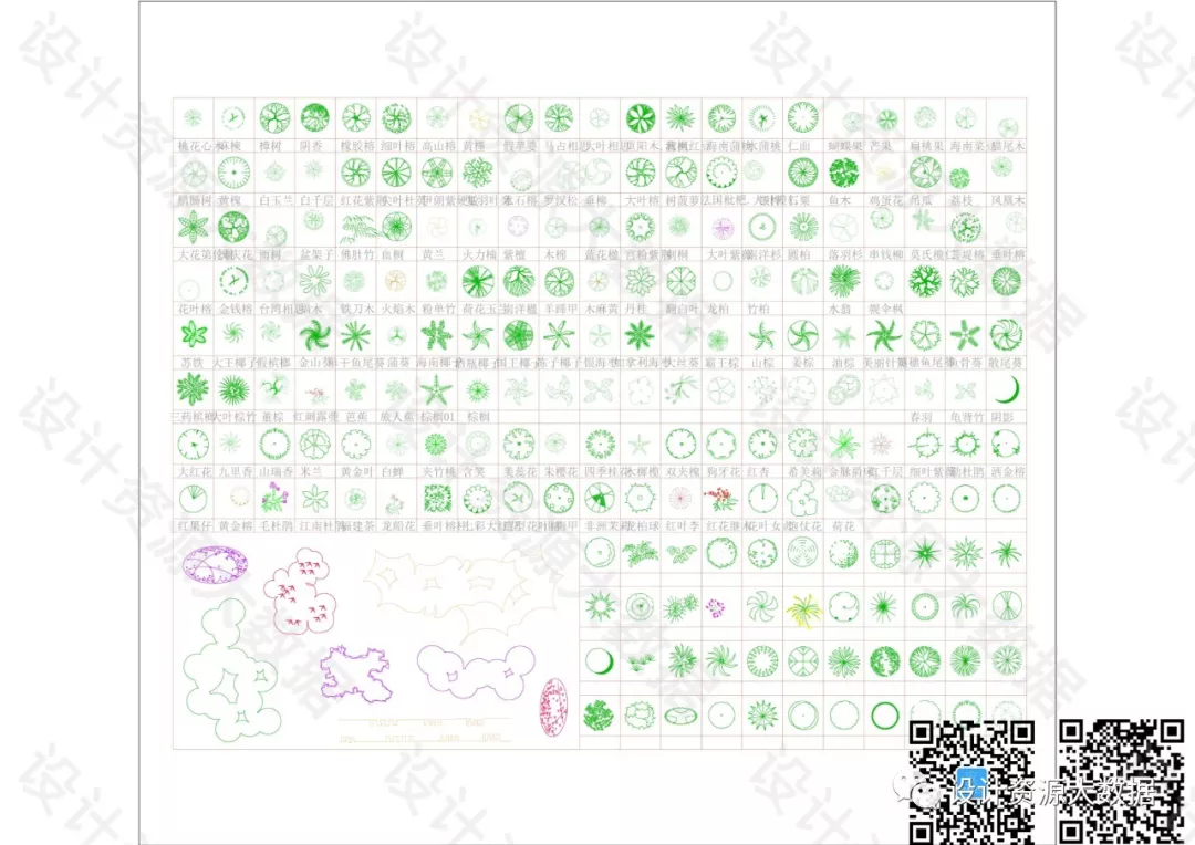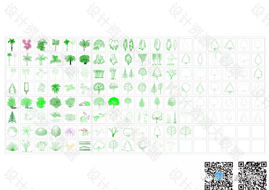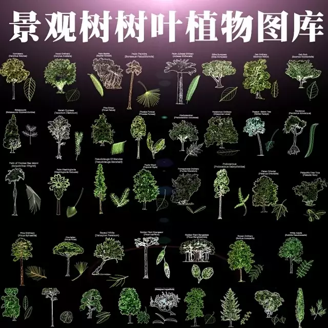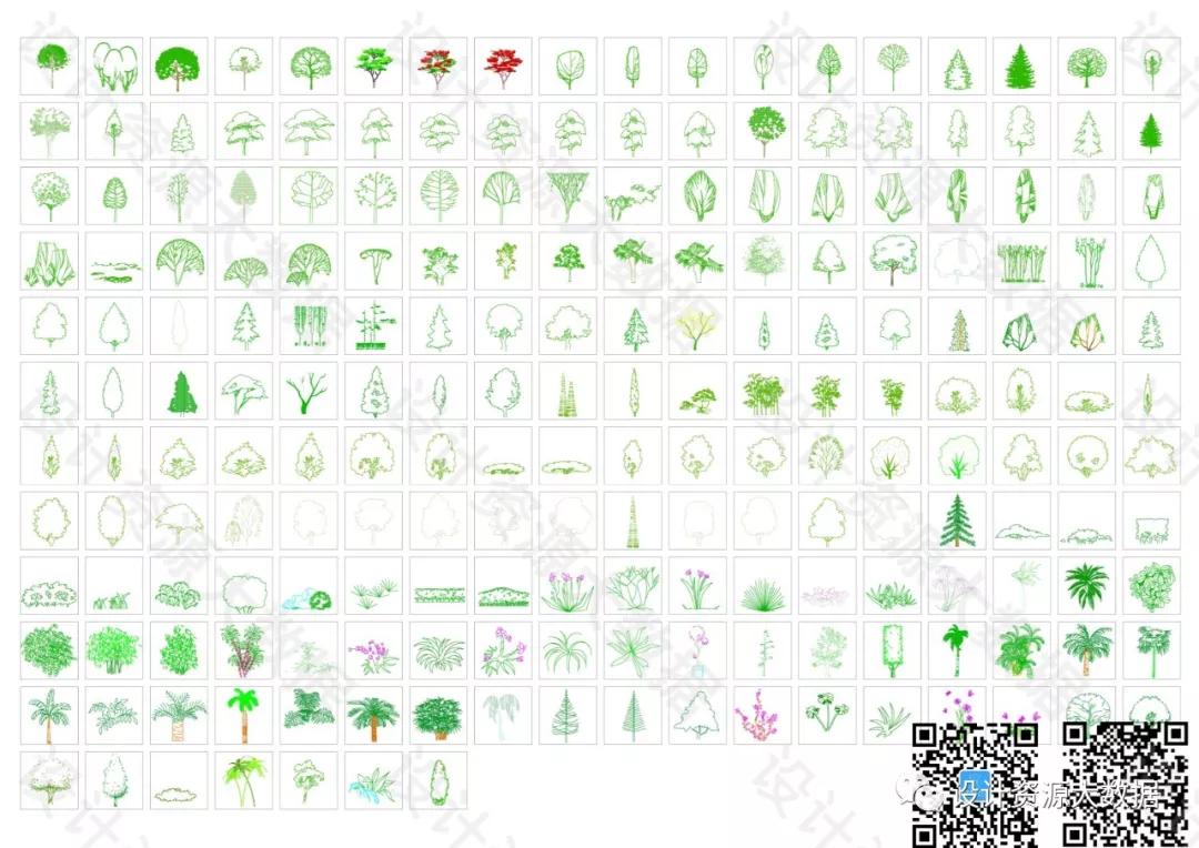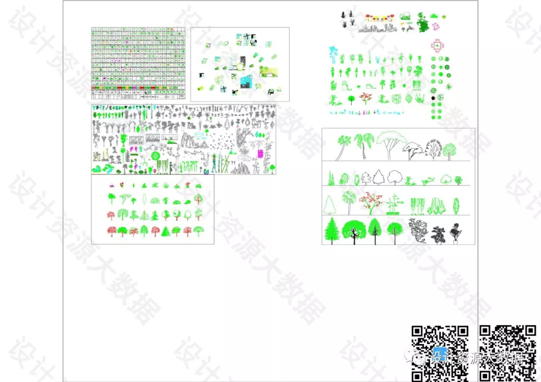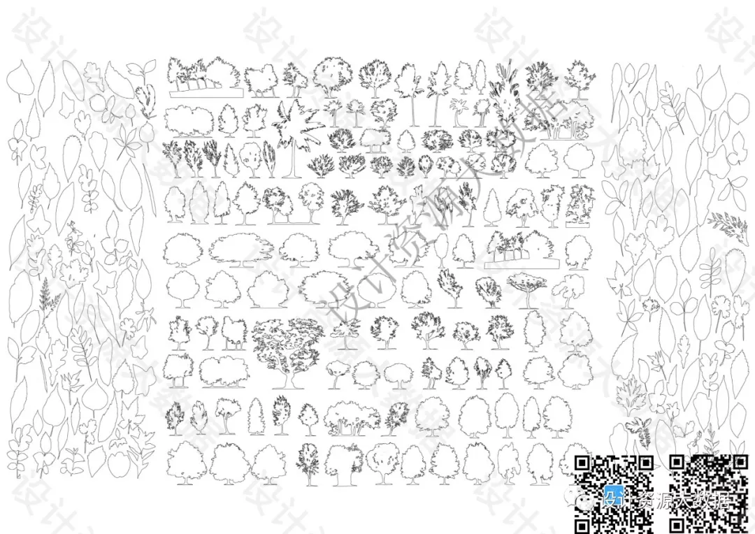 CAD素材-景观树树叶植物cad图库图块