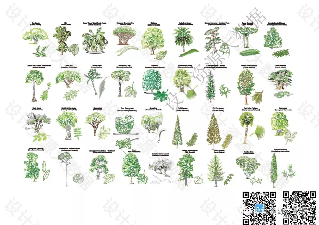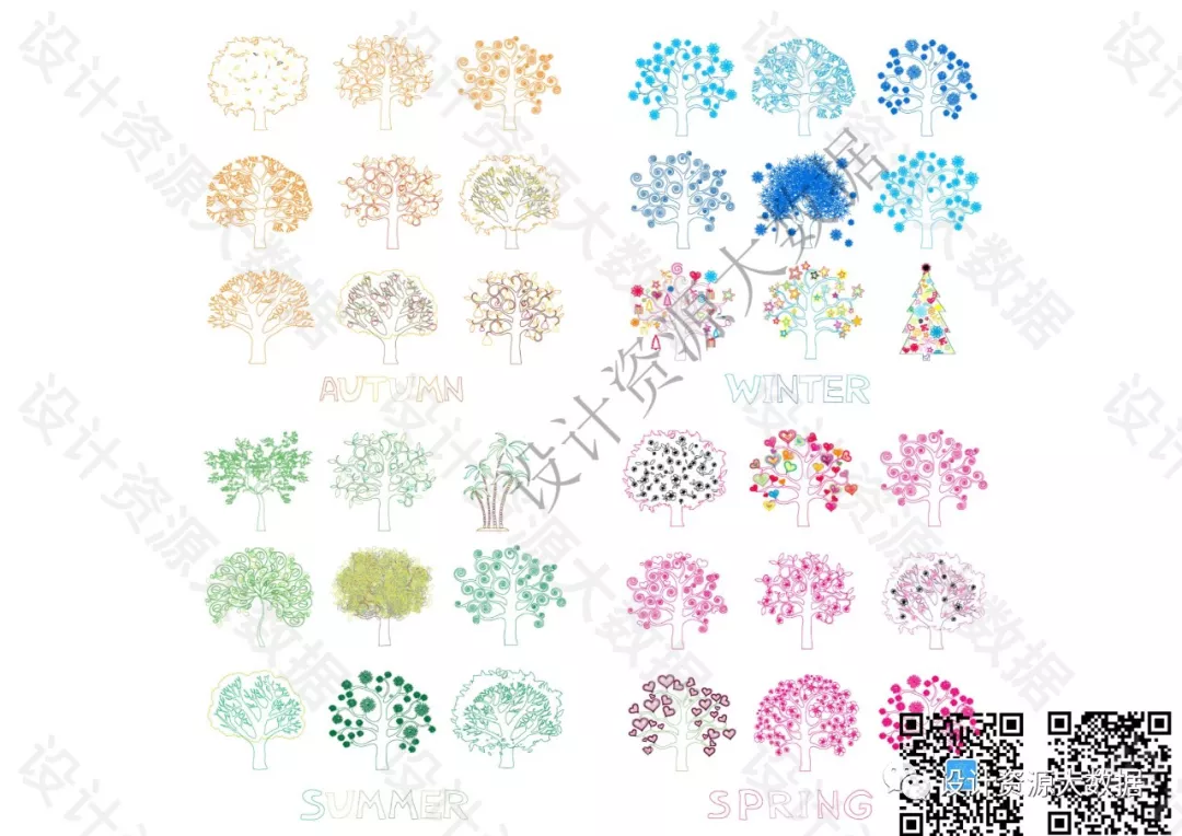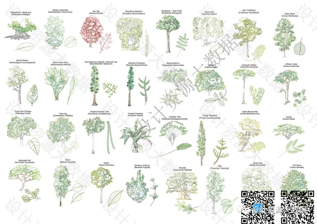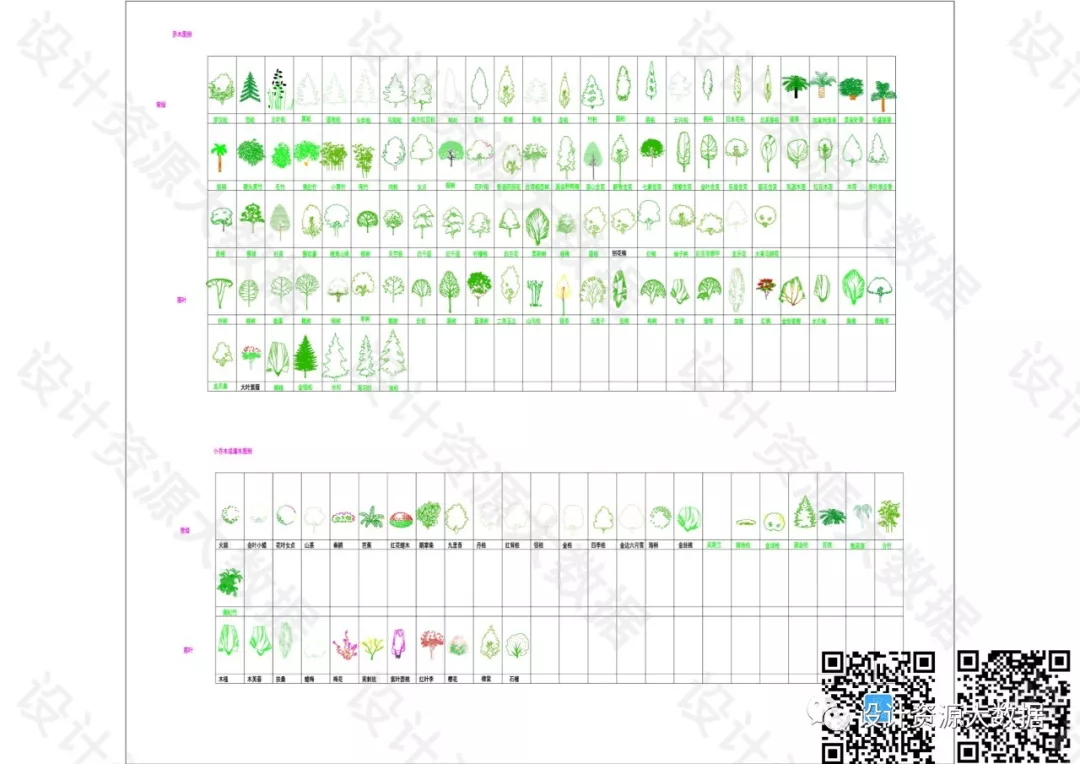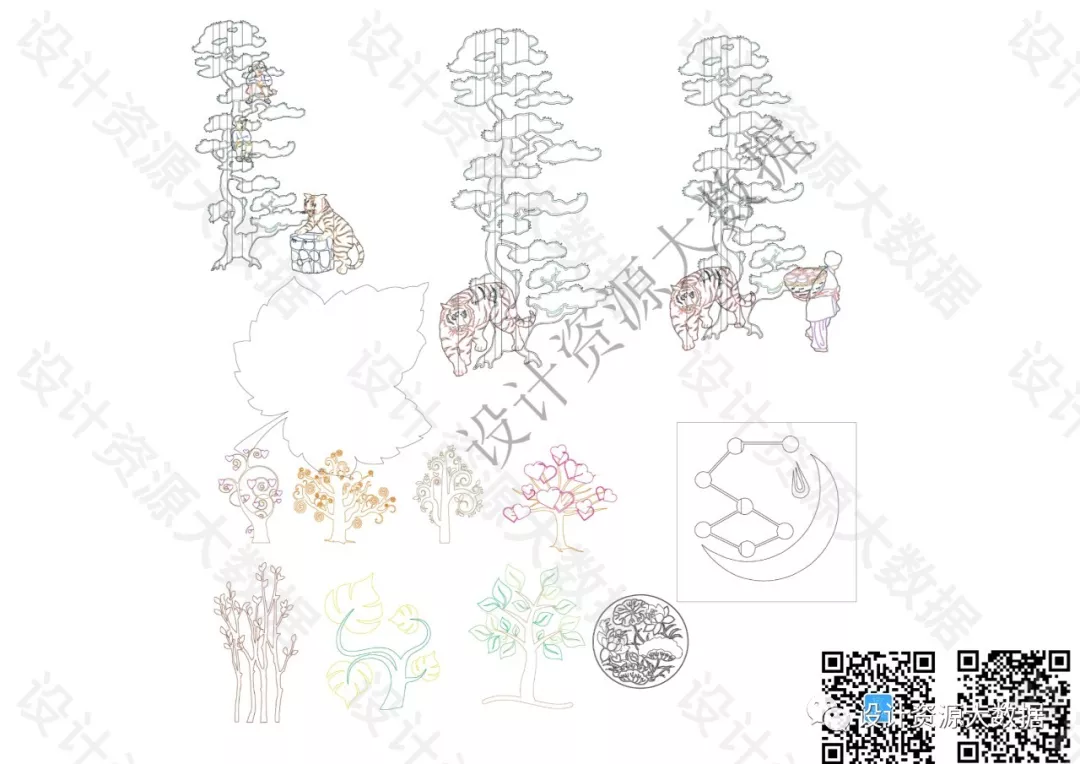 CAD素材-景观树树叶植物cad图库图块