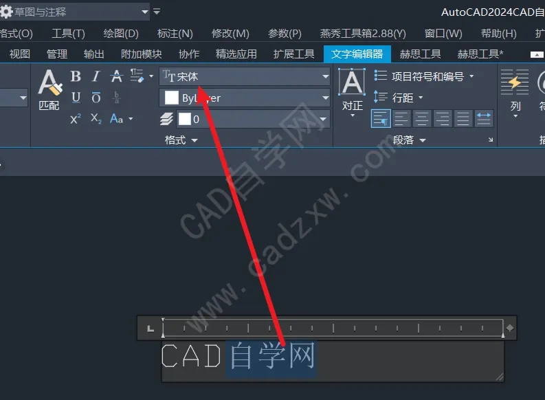 当不勾选大字体的时候,如果是多行文字中文会自动使用宋体;