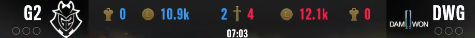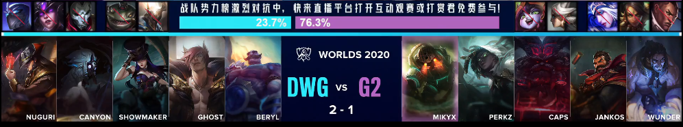 这一系列前期决策,都是G2想快点结束对面的表现。对面是DWG,利用他们的破绽打败了他们。