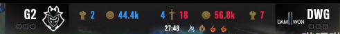 2019年,10月27日,DWG被G2以3比1的成绩带走。
