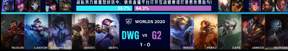 去年G2很强,原因就是Jankos和Caps很强,他们是世界级的中野。今年再对比一下的话,G2的中野比DWG就弱很多。