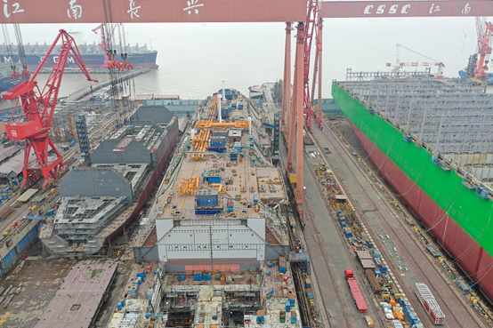 8月5日,由中国船舶集团旗下沪东中华承建的“中国海油中长期FOB资源配套液化天然气(LNG)运输船项目”首制船在长兴造船基地点火开工,标志着由中国自主研发设计、代表当今世界大型LNG运输船领域最高技术水平的中国第五代“长恒系列”17.4万立方米LNG运输船由设计蓝图“驶向”实船建造。