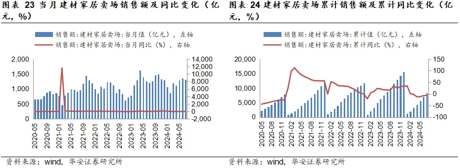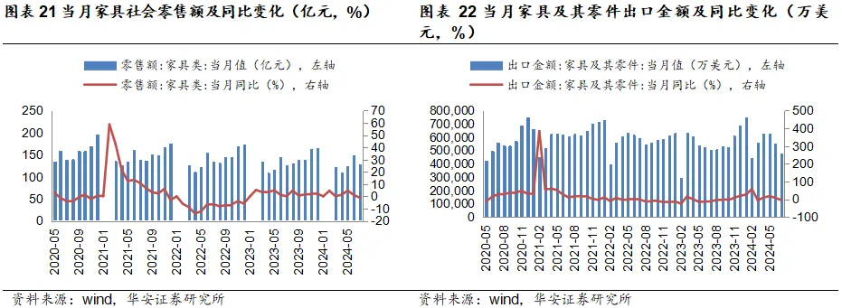 销售数据:2024年7月,家具销售额为129亿元,同比-1.1%;当月家具及其零件出口金额为474171.5万美元,同比-5%;建材家居卖场销售额为1306.89亿元,同比8.32%。