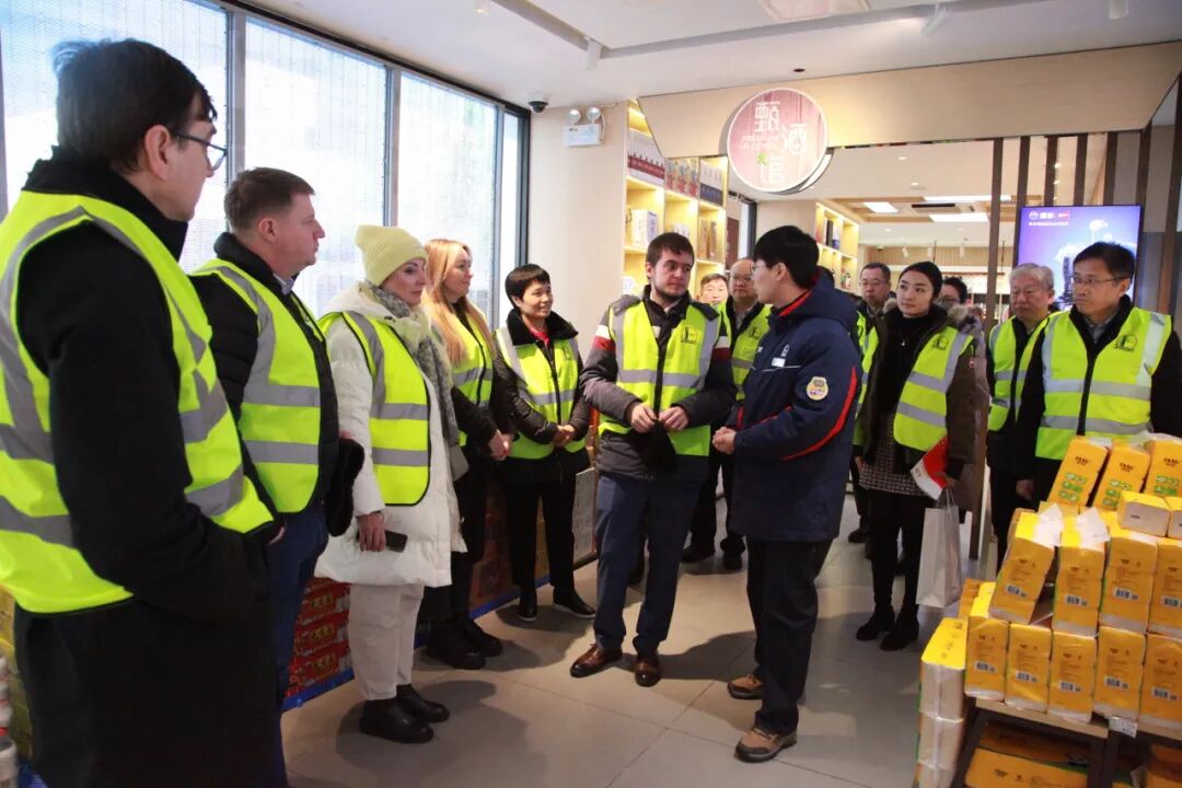 在龙禹综合加能站,俄气代表团依次参观了甄酒馆、Tims咖啡、易捷服务、充电服务区及加油区域。在易捷国际商品区域,叶慧青向考察团介绍了客户可在店内下单,物流直送到家的服务形式,考察团对中石化易捷商品销售的多样性和便利性产生了浓厚的兴趣。在加油区域,考察团了解了油品经营的品号、销售情况、加油机功能及客户支付方式。双方围绕易捷品牌、汽车服务、支付方式、油品运输、接卸作业等方面展开交流。