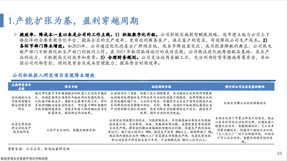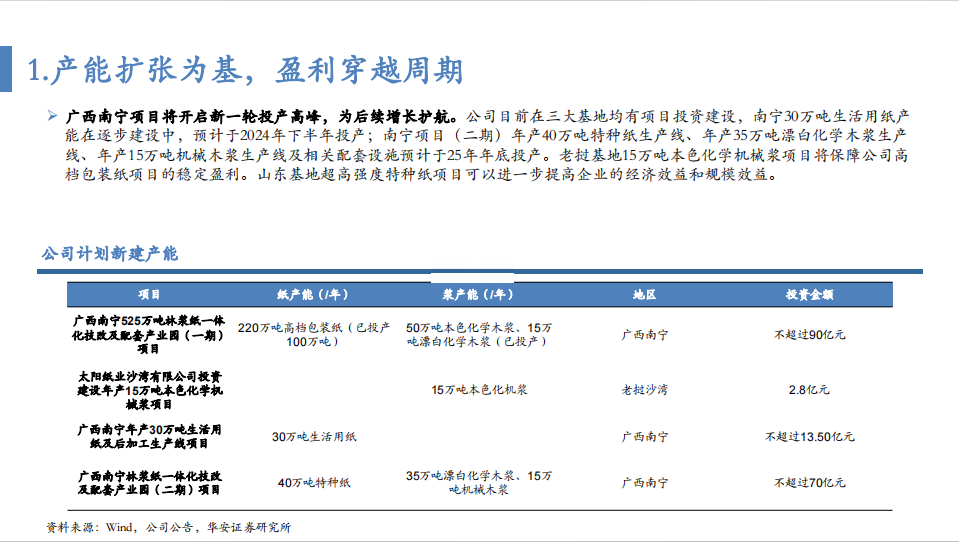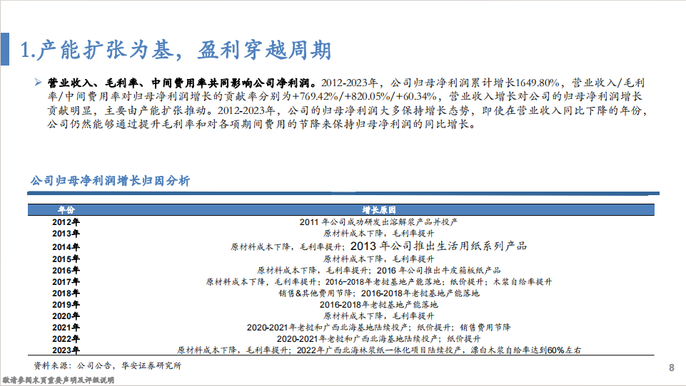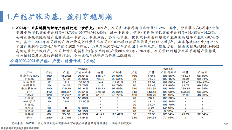 分析师:徐偲(S0010523120001)分析师:余倩莹(S0010524040004)重要说明1 重要提示:本文内容节选自华安证劵研究所已发布报告:《产能扩张为基,盈利穿越周期—太阳纸业的成长性复盘