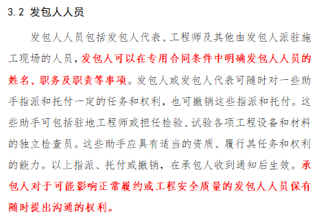 比如规定了工程总承包项目经理未经批准离开施工现场将承担违约责任,且明确不得兼职(含工程总承包、施工总承包);增加“发包人的管理”章节,规定了发包人代表、工程师等内容 1.进一步明晰承包人和发包人双方的责任界限。