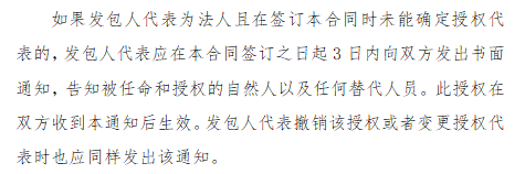 第二部分 第3条 发包人的管理01关于“发包人代表”的变化:如果发包人代表为法人且在签订本合同时未能确定授权代表的,发包人代表应在本合同签订之日起3日内向双方发出书面通知。