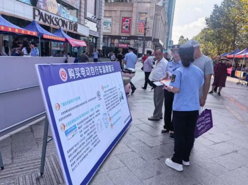 六盘水市市场监管局执法人员现场向群众讲解购买电动自行车注意事项