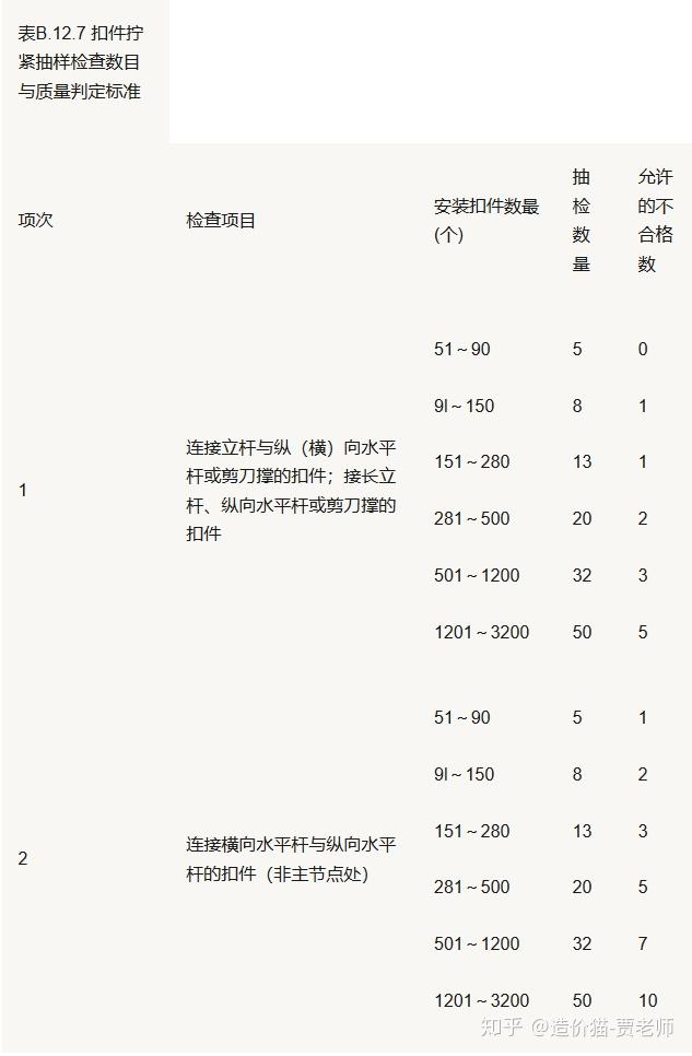 5、安装后的扣件螺栓拧紧扭力矩采用力矩扳手检查,抽样方法安装随机分布原则进行。抽样检查数目与质量判定标准,按下表规定确定。不合格的应重新拧紧至合格。 (JGJ130-2011第8.2.5条)