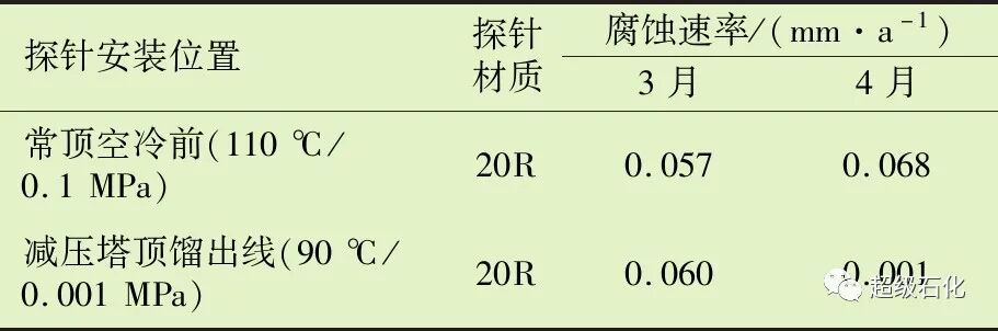 此次加工高氯原油期间,常顶、减顶冷凝冷却系统腐蚀轻微,表明常顶、减顶系统的工艺防护措施效果良好