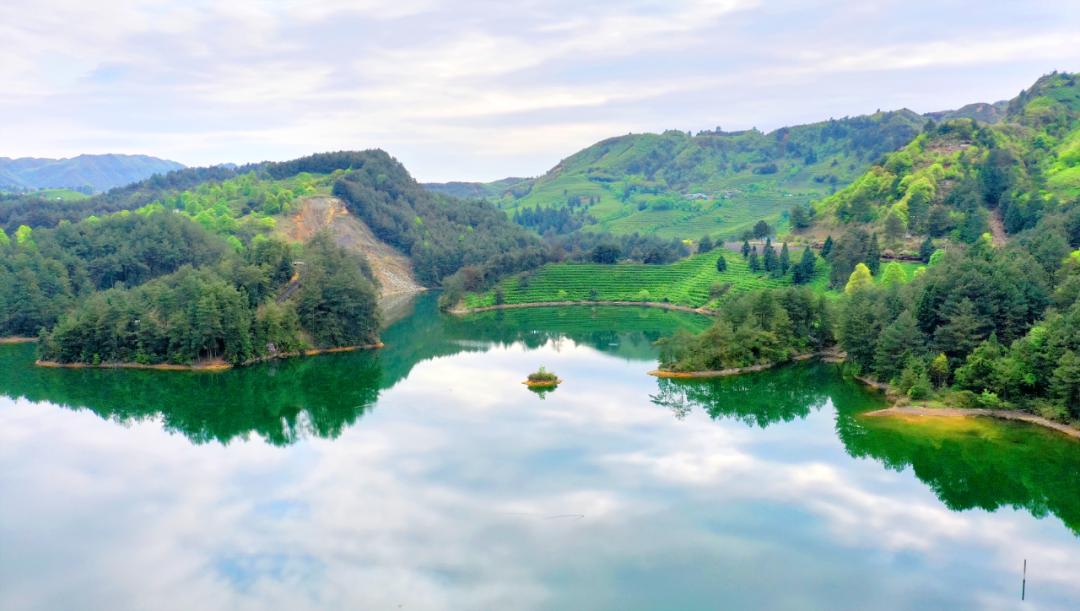 湖的四周有茂密的森林和绕山环坡的万亩茶园,附近还有风景奇美的甲子屯、水口山、连珠山等自然景观,吸引着无数游人前往。